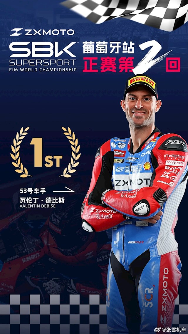 3月28日,德比斯从第二发车位起步后全程领跑,凭借弯道稳定性和动力输出建立超3秒优势,最终以领先3.669秒冲线,创造中国品牌在WSBK中量级组别的首个冠军纪录。